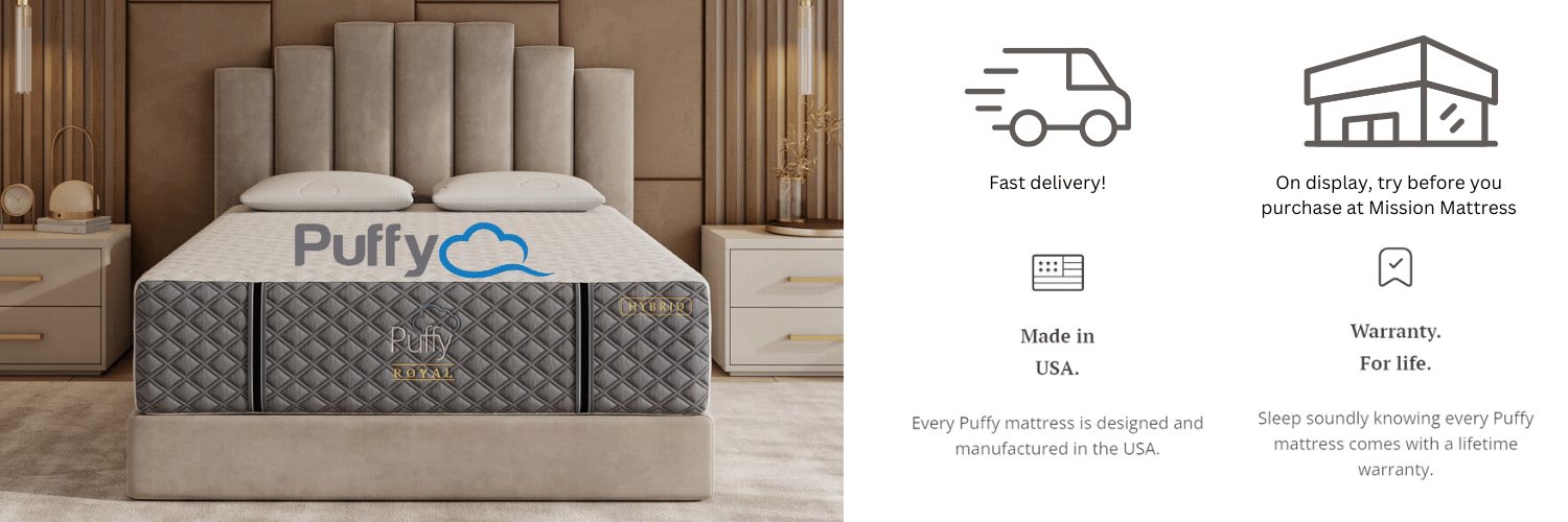 Puffy’s mattresses are crafted with premium, CertiPUR-US® certified foams and come with a lifetime warranty, making them a smart investment in better sleep and long-term comfort.