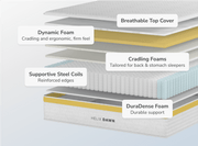 The Helix Dawn is our firmest mattress for stomach and back sleepers. It features highly resilient, responsive foam layers that cradle your body and provide spinal alignment support to help alleviate back pain.