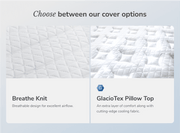 Choose between our Breathe Knit cover or upgrade to the GlacioTex™ Cooling Pillow Top for cooling tech that pulls heat away from your body.
